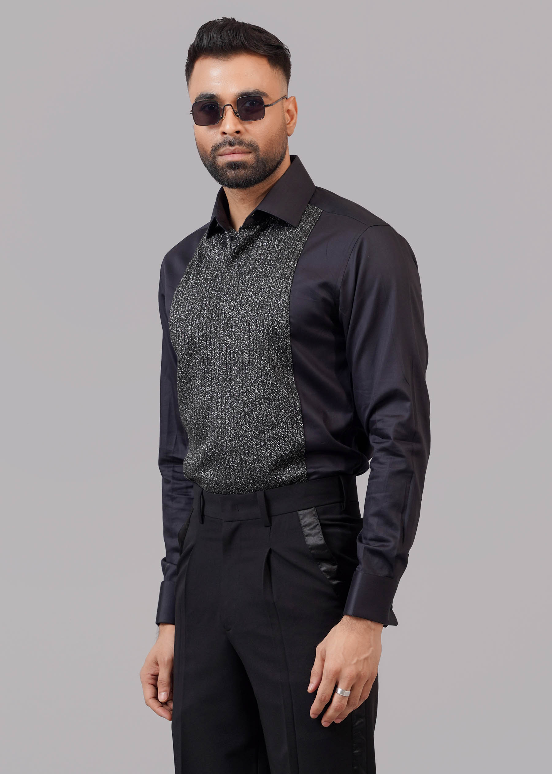 Elevate your formal wardrobe with our Black Tuxedo Shirt, a timeless piece crafted for refined occasions. Made from premium cotton fabric, it offers a soft, breathable feel while maintaining a crisp, structured look throughout the day or night.
