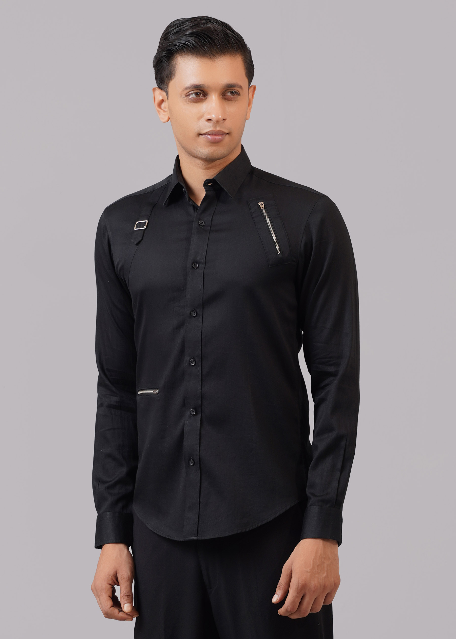 Crafted from premium breathable fabric, it ensures comfort without compromising on style. The buckled belt detail adds an extra layer of character, making this shirt a true fashion-forward essential.
