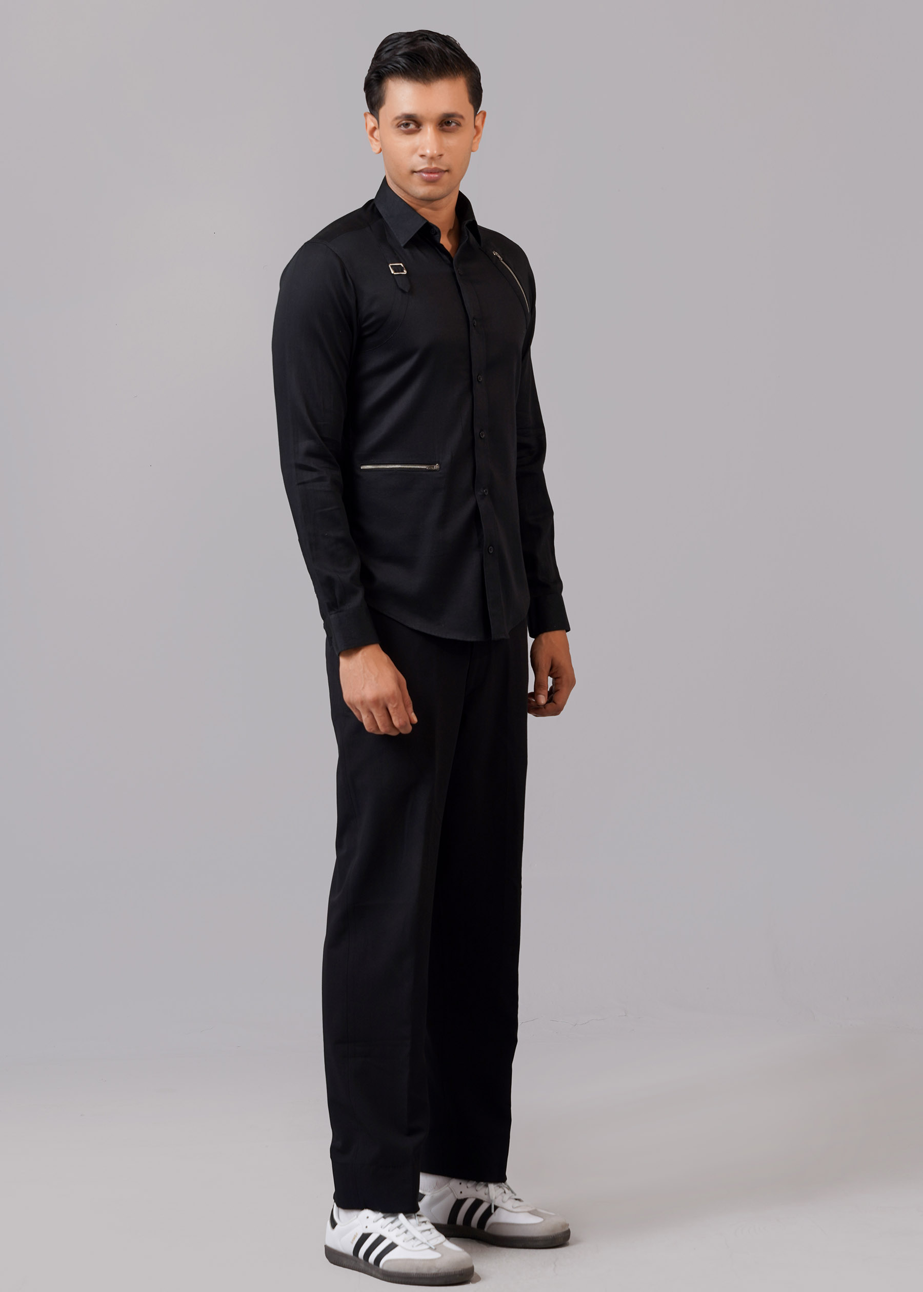 Make a bold statement with our Classic Club Shirt, uniquely styled with a metal front zipper and an adjustable belt with buckles for a standout urban edge. This shirt blends classic structure with contemporary streetwear aesthetics, perfect for parties, nightlife, or modern casual looks.