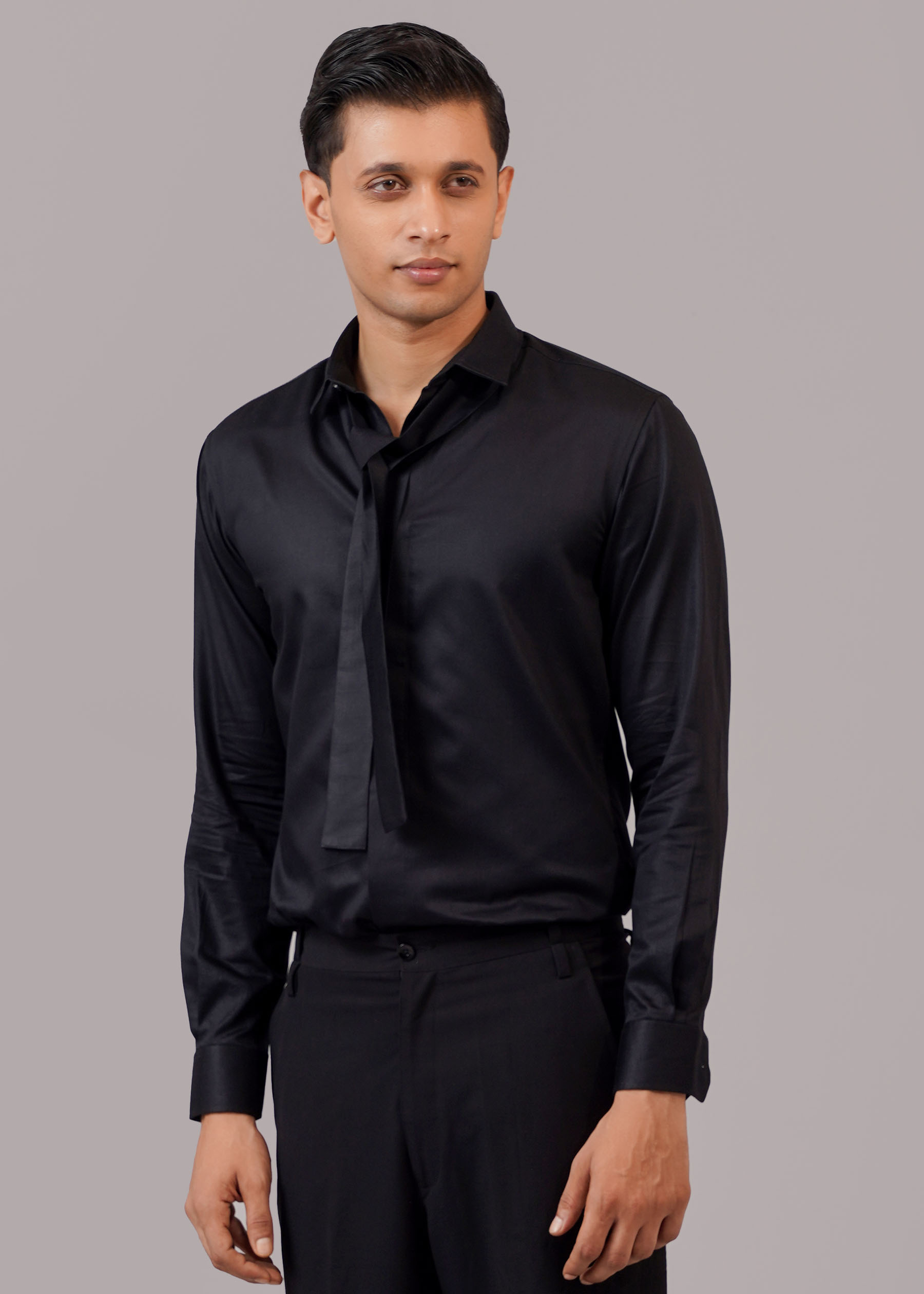 Classic Club Shirt with Tie-Style Belt – Smart Casual Redefined
