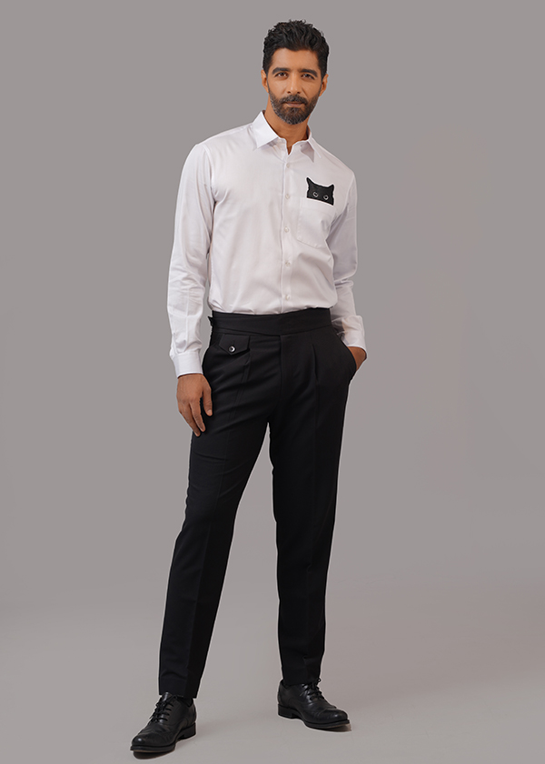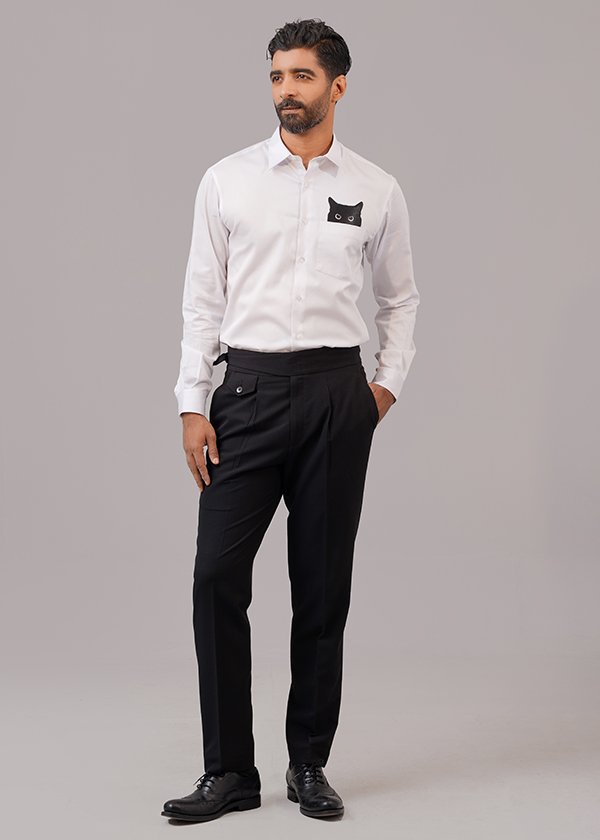 Classic Cat Embroidery Shirt – Playful Elegance with Premium Comfort