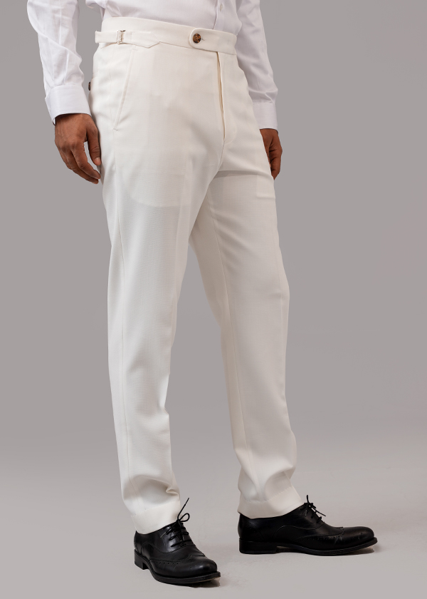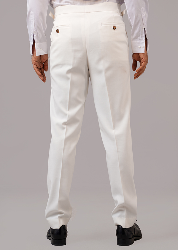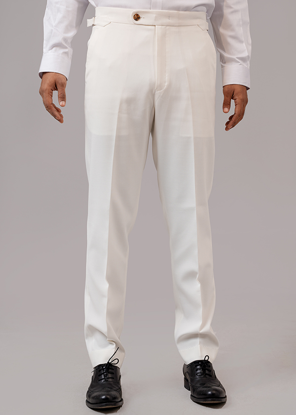Elevate your formal and casual wardrobe with our White Gurkha Trouser, designed without pleats for a clean, modern look. Crafted from premium fabric in Bangladesh, this trouser features an adjustable side belt that ensures a perfect fit without the need for a separate belt.