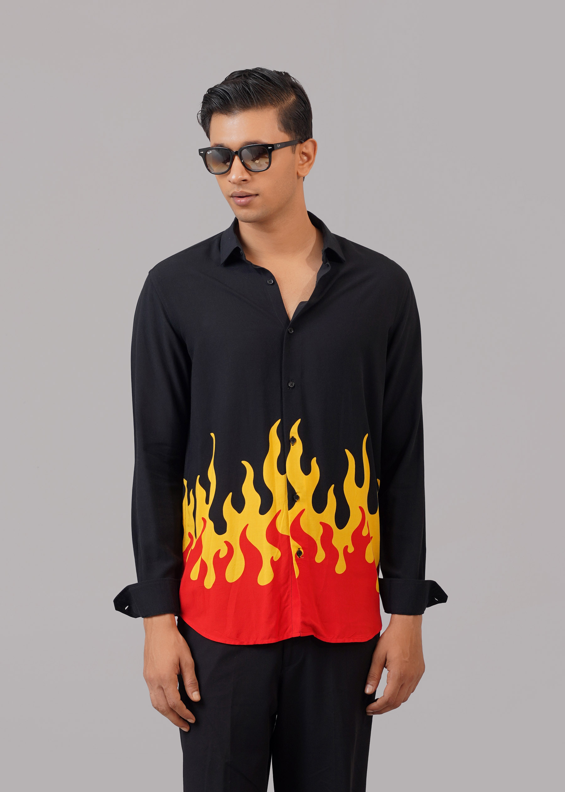 Turn heads and spark conversations with the Fire Printed Shirt — where bold design meets breathable comfort. Featuring a striking flame pattern on soft cotton fabric, this shirt is made for those who dare to stand out.